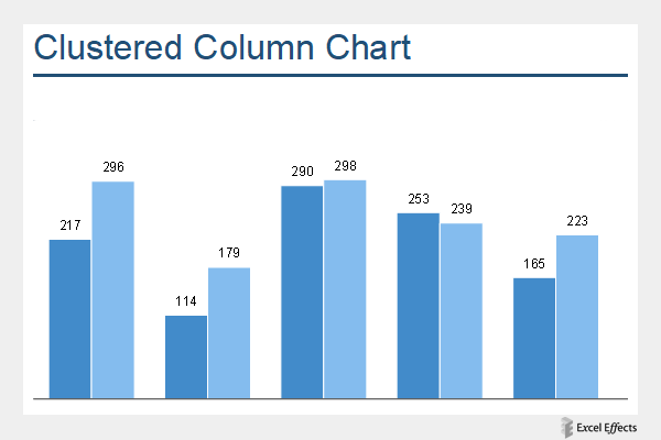 The clustered column chart is very similar to the standard column. Instead, it has additional columns, side-by-side, forming a cluster.