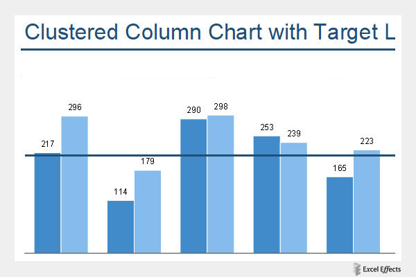 Clustered column chart with target line