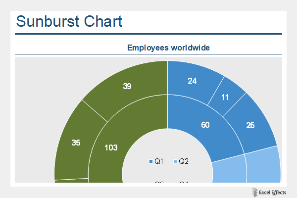 The sunburst chart is a creative way to show parts of a whole in a circular fashion.