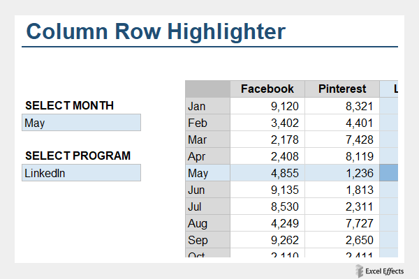 The column row highlighter is a spreadsheet tool that automatically highlights a row and column based on user selections.