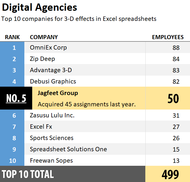 Now, we get a little fancy, with a colorful first column, a highlighted content row, and a highlighted total row. This is good stuff!